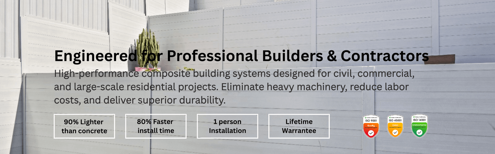 High-performance composite systems that reduce project timelines by 60%, eliminate heavy machinery costs, and deliver superior durability for professional builders and developers.